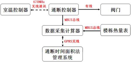 通斷時間面積法由以下幾部分組成:室溫溫控器(無線或有線)、通斷控制器及閥門(有線或無線)、數(shù)據(jù)采集計(jì)算器(有線或無線)、單元或樓棟熱量表、通斷時間面積法管理系統(tǒng)五大部分組成。