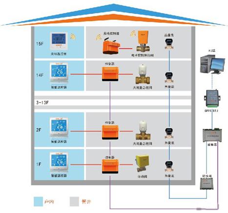 配置:戶用溫控器、遠(yuǎn)程電動閥門、樓棟單元集中刷卡控制箱、樓棟采集器、樓棟集中器